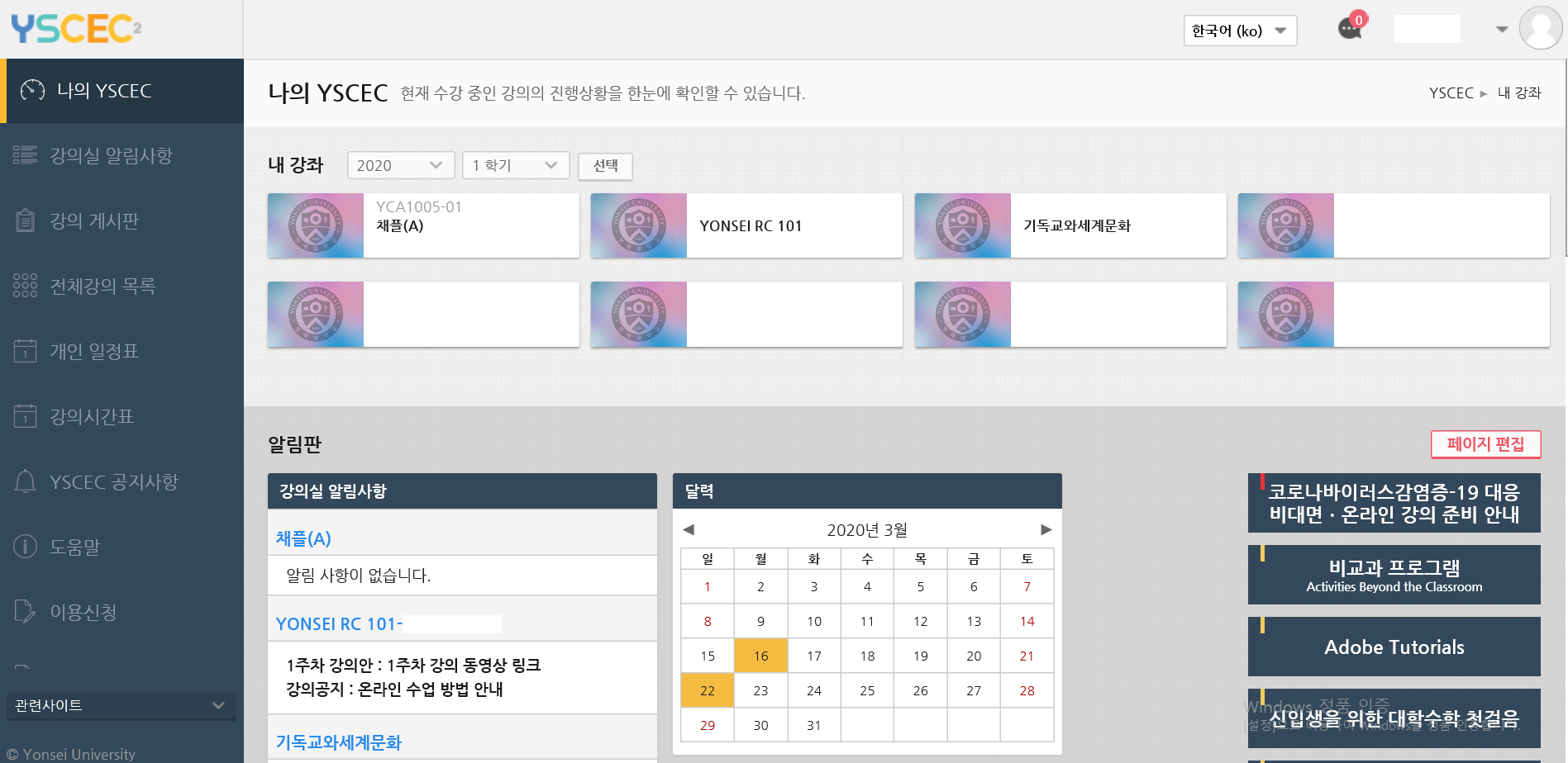 수강신청이 확정된 후에 YSCEC이 궁금하실 분들을 위해 사진을 첨부해보겠습니다.